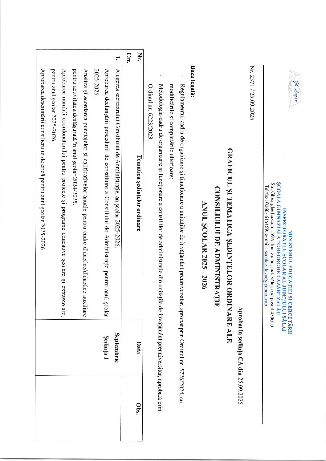 Graficul și tematica ședințelor ordinare ale Consiliului de administrție